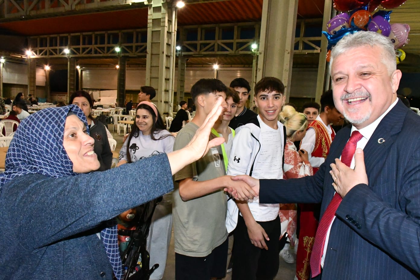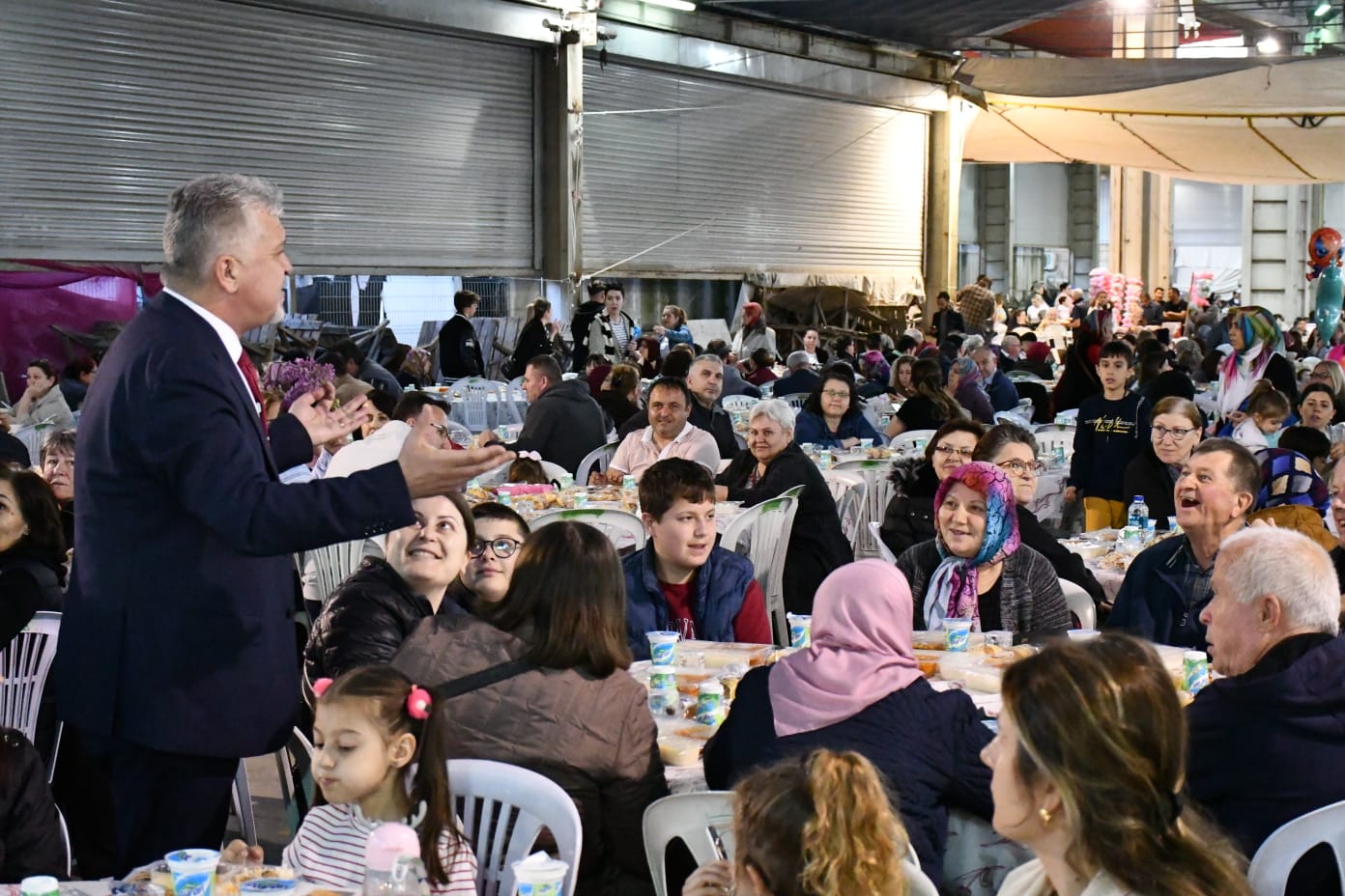 Lüleburgaz Belediyesinin Kadir Gecesi’ne özel düzenlediği yaklaşık 10 bin kişilik iftar organizasyonu sonrasında konuşan Başkan Gerenli, “Sevdamız Lüleburgaz’da dayanışmayı, hoşgörüyü ve komşuluk ilişkilerini büyütmeye devam edeceğiz” dedi.Lüleburgaz Belediyesi Kapalı Pazar Yeri ve Semt Merkezi’nde Kadir Gecesi çerçevesinde yaklaşık 10 bin kişilik iftar düzenledi.İftar yemeğinde geleneksel Osmanlı macuncuları, Karagöz ve Hacivat gölge oyunlarının yanı sıra Lüleburgaz Belediyesi Kuklalar Kumpanyası da yer aldı.Ayrıca Lüleburgaz Belediyesi Çocuk Hakları Birimi gönüllülerinin Ramazan davulcusu olduğu iftar etkinliğinde Ramazan gelenekleri bir kez daha yaşatıldı. Gerenli’ye yoğun ilgiİftara dakikalar kala alan dolarken vatandaşlar ikinci dönemi için mazbatasını alan Lüleburgaz Belediye Başkanı Dr. Murat Gerenli’ye çok yoğun ilgi gösterdi. Özellikle çocuklar Başkan Gerenli’yle fotoğraf çektirmek için birbiriyle yarışırken Gerenli vatandaşın fotoğraf talebini kırmadı. Dayanışma ve hoşgörü vurgusuBaşkan Gerenli iftar öncesinde tüm sofraları tek tek gezerek vatandaşları karşıladıktan sonra halkın arasında iftarını açtı. İftardan sonra açıklama yapan Başkan Gerenli dayanışma ve hoşgörü vurgusu yaptı.Başkan Gerenli, “Bu kutsal gecede binlerce komşumuzla iftar sofrasında buluştuk. Sevdamız Lüleburgaz'da dayanışmayı, hoşgörüyü ve komşuluk ilişkilerini büyütmeye devam edeceğiz. Kadir Gecemiz bir kez daha kutlu olsun” dedi.