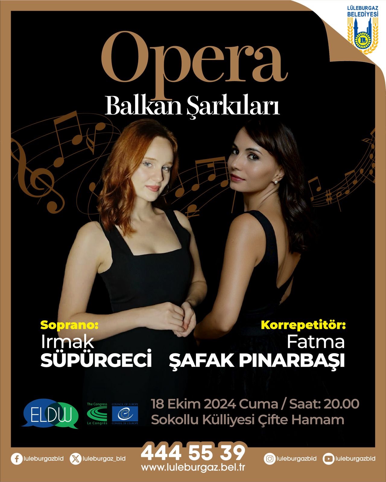 Lüleburgaz’ın tarihi hazinelerinden biri olan Sokollu Külliyesi’ndeki yaklaşık 450 yıllık çifte hamam, 18 Ekim Cuma akşamı saat 20:00'de gerçekleşecek olan ‘Opera: Balkan Şarkıları’ konserine ev sahipliği yapacak.Lüleburgaz Belediyesi’nin düzenlediği Avrupa Yerel Demokrasi Haftası etkinlikleri çerçevesinde gerçekleştirilecek bu konser, tarihi mekanın büyüleyici atmosferinde sanatseverlerle buluşacak.Etkinlik, Lüleburgaz’ın kültürel değerlerini ön plana çıkarırken, sanattan spora pek çok faaliyetin yer aldığı bu özel hafta boyunca, Sokollu Külliyesi’nin Çifte Hamam’ında sanat dolu anların yaşanmasına zemin hazırlayacak.Konserde soprano Irmak Süpürgeci, korrepetitör Fatma Şafak Pınarbaşı ile birlikte Balkan şarkılarını seslendirecek. Bu konser, Lüleburgaz’ın kültürel zenginliğine katkı sağlamanın yanı sıra, tarihi mekanların yeniden hayat bulmasını da amaçlıyor. Tüm sanatseverler davetlidir.