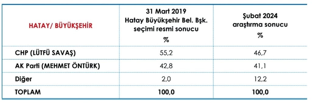 ‘BU NE DİYE SORDU’AREA’nın sahibi Murat Karan’sa Savaş’la bu anket hakkında yaptığı konuşmayı şöyle anlattı: “Son bir hafta ayrı ayrı müşterilere anket yaptık. Hatay’da, ilçeler bazında bir anketti. Lütfü Savaş’ı ilan edeceklerini düşündüğüm için ankette sormamıştık. Kıyamet kopunca, anket denilince, tartışmanın orta yerinden konuya girdim. Anketi yayımladım. Yayımlanır yayımlanmaz Lütfü Savaş, ‘Bu ne?’ diye sordu. Onun kafasındaki rakam yüzde 50 ama bizim ankette yüzde 46.7 çıktı. Önceki seçime göre yüzde 9 azaldığını söyledim. Normal bir durum. İYİ Parti ve TİP’in adayları var. Rapor yaptık, ilçeler bazında da sunduk. CHP’nin avantajı şu: Dörtyol, İskenderun ve Antakya. Üç ilçede de doğru adaylar bulmuşlar. Bütün bu oyunu Lütfü Savaş kurdu diyebilirim. İlçe adaylarını belirleyen o oldu.”Son dakikada CHP’nin yaptırdığı ankete tepki gösteren Lütfü Savaş, “Kendimi yapılan bu son ankete yedirmem” dediği iddia edildi ve rest çekerek, “Bağımsız aday olurum” dedi.CHP yönetiminin de bu reste karşılık veremediği ve Savaş’ın bağımsız aday olursa Hatay’ın kaybedileceğine ikna olduğu ifade edildi. Kaynak:BirGün