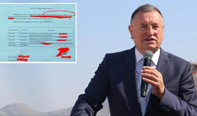 Başkan Öntürk'ün bahsettiği belgeler ortaya çıktı. Sabah'ın haberine göre Hatay'da kendini iş insanı olarak tanınan bir kişi, Hatay Büyükşehir Belediyesi'ne "İmar harcı bedeli" olarak 8-13 Şubat tarihleri arasında 9 milyon 800 bin, 8 milyon, 9 milyon 200 bin ve 5 milyon olmak üzere 4 ayrı para transferiyle toplam 32 milyon TL havale yaptı.YANLIŞLIKLA GÖNDERDİĞİNİ İDDİA EDİP 32 MİLYON TL'Yİ GERİ İSTEDİ
