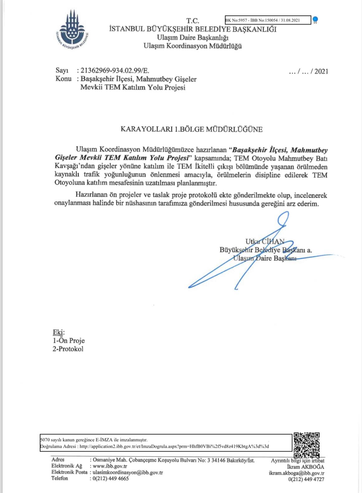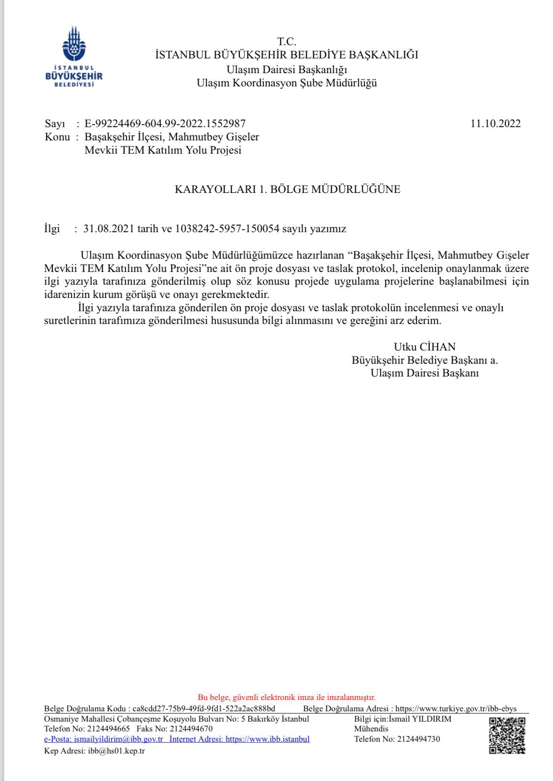 İstanbul Büyükşehir Belediyesi Ulaşım Daire Başkanlığı’nın, sorumluluk alanında olmamasına rağmen TEM Otoyolu Mahmutbey Gişeler mevkiindeki trafik yoğunluğunun önlenmesi için proje hazırladığı, Karayolları Genel Müdürlüğü’nün bölgedeki çalışmayı KGM 1. Bölge Müdürlüğünün yürüteceği yanıtını verdiği ortaya çıktı.İBB’nin 31 Ağustos 2021 tarihindeki girişimine 16 ay sonra olumsuz yanıt veren Ulaştırma ve Altyapı Bakanlığı Karayolları Genel Müdürlüğü, bölgede bugüne kadar herhangi bir çalışma yapmadı.BAŞAKŞEHİR / İSTANBULİBB Ulaşım Daire Başkanlığı, Mahmutbey gişeler bölgesindeki trafik yükünü azaltmak için 31 Ağustos 2021 tarihinde hazırladığı proje detaylarını Karayolları Genel Müdürlüğü’ne (KGM) resmî yazıyla bildirdi. Onay için görüşü sorulan KGM, yanıt vermedi. İBB Ulaşım Daire Başkanlığı, bu kez de hatırlatma yazısı gönderdi.İlk başvurudan 16 ay sonra, 5 Ocak 2023 tarihinde İBB’ye yanıt veren Karayolları Genel Müdürlüğü, adı geçen bölgedeki proje çalışmalarının KGM 1. Bölge Müdürlüğü tarafından yürütüleceğini söyledi.KGM YANITI: PROJE ÇALIŞMALAR MÜDÜRLÜĞÜMÜZCE YÜRÜTÜLMEKTEDİRKGM 1. Bölge Müdürlüğü tarafından Bölge Müdür Yardımcısı Arif Yıldız imzasıyla İBB’ye gönderilen yazıda, “İBB tarafından hatırlatılarak bölge müdürlüğümüze gönderilmiş olan Başakşehir İlçesi Mahmutbey Gişeler Mevkii TEM Katılım Yolu Ön Projesi’nin onaylanması talep edilmektedir.Bölge müdürlüğümüzün yol ağında yer alan TEM otoyolu Mahmutbey Batı kavşağı ile Mahmutbey Gişeler arası kesimde, trafik yoğunluğundan kaynaklı sıkıntıların çözülmesi amacıyla proje alternatiflerine yönelik çalışmalar, bölge müdürlüğümüzde yürütülmektedir” denildi.YANIT ALINAMAYINCA, HATIRLATMA YAZISI GÖNDERİLDİİstanbul Büyükşehir Belediyesi Ulaşım Daire Başkanlığı Ulaşım Koordinasyon Müdürlüğünce hazırlanan Başakşehir ilçesi Mahmutbey Gişeler Mevkii Tem Katılım Yolu Projesi, 31 Ağustos 2021 tarihinde İBB Ulaşım Daire Başkanı Utku Cihan imzasıyla Karayolları 1. Bölge Müdürlüğüne resmî bir yazıyla iletildi.Onay için sunulan ön proje ve protokole yanıt alınamadı. İstanbul Büyükşehir Belediyesi Ulaşım Daire Başkanlığı 11.10.2022 tarihinde bu kez hatırlatma yazısı gönderdi.Yazıda, “ Proje dosyası ve taslak protokol incelenip onaylanmak üzere ilgi yazıyla tarafınıza gönderilmiş olup, söz konusu projede uygulama projelerine başlayabilmesi için idarenizin kurum görüşü ve onayı gerekmektedir” denildi.1.5 YIL SONRA OLUMSUZ YANITİlk başvurudan 16 sonra İBB’ye yanıt veren Ulaştırma ve Altyapı Bakanlığı Karayolları Genel Müdürlüğü, “proje müdürlüğümüzde yürütülmektedir” dedi. Aradan geçen sürede bölgede KGM tarafından çalışma yapılmazken, İBB Adayı Murat Kurum, seçilmesi halinde Mahmutbey’deki trafik sorununu çözeceklerini söyledi. ENGELLENMESEYDİ İBB PROJESİ HAYATA GEÇMİŞ OLACAKTIİBB’nin hazırladığı ve onaylanmış olsaydı bugün hayata geçmiş olacak proje ile Tem Otoyolu Mahmutbey Batı Kavşağı'ndan gişeler yönüne katılım ile TEM İkitelli çıkışı bölümünde yaşanan trafik sıkışıklığını önlemek için TEM otoyoluna katılım mesafesi uzatılacaktı.Katılım yol genişliği 17 metreye yol uzunluğu da 892.9 metreye çıkarılacak, istinat duvarı ve altgeçit genişletmesi ile bölgede ciddi bir rahatlama sağlanacaktı.