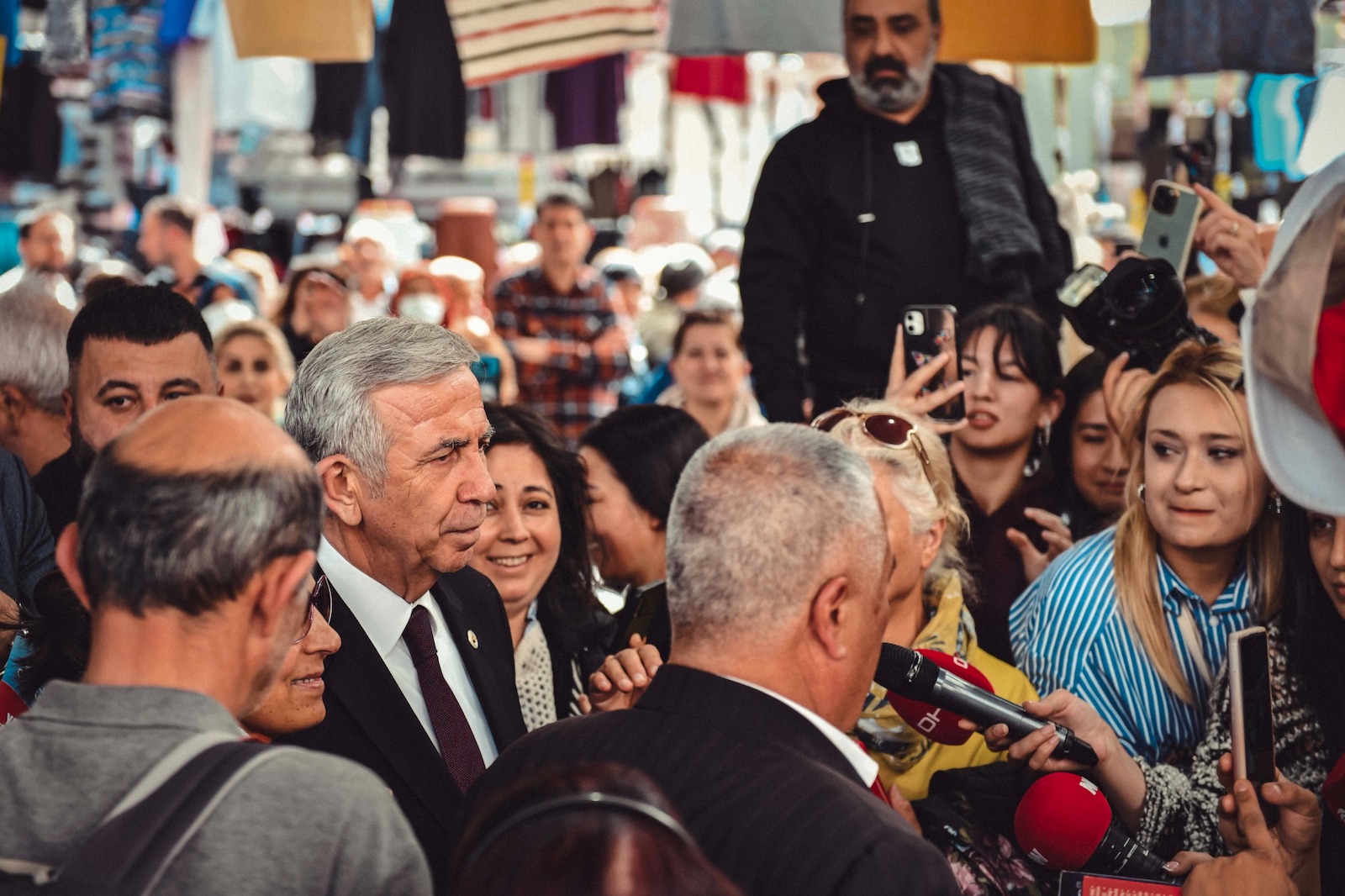 Ankara Büyükşehir Belediye Başkan Adayı Mansur Yavaş Sıhhiye-Yenişehir Pazar Yeri esnafını ziyaret etti.