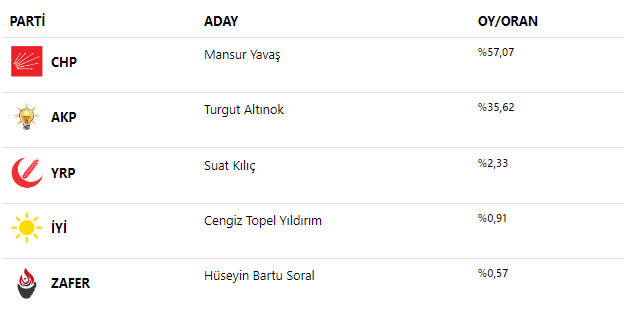 31 Mart 2024 tarihinde gerçekleştirilen yerel seçimler sonucunda Ankara'nın yeni belediye başkanı ve meclis üyeleri belirlenecek. Seçimlerde yarışan adaylar ve partilerin aldıkları oy sayıları ve oranları büyük bir merakla bekleniyor.Kesin olmayan sonuçlara göre saat 20.07 itibariyle Ankara'da yerel seçim yarışında son durum şöyle:
