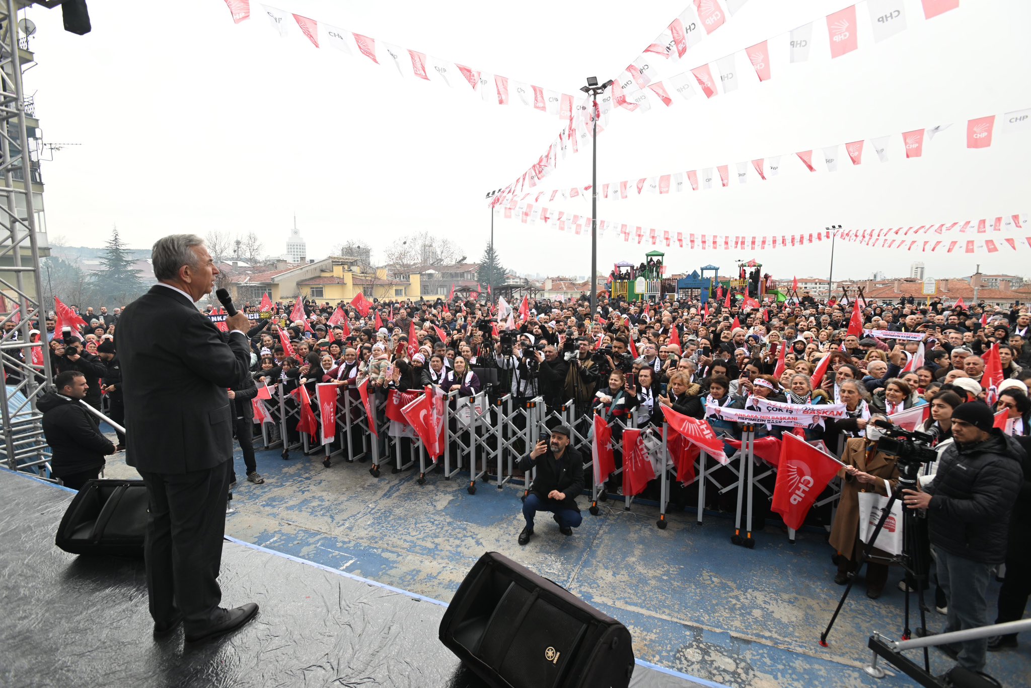 Ankara Büyükşehir Belediye Başkan Adayı Mansur Yavaş, Seyranbağları’nda vatandaşlarla buluştu. Vatandaşların yoğun ilgi gösterdiği Yavaş, “Televizyonlarda Mansur Yavaş belediyeciliği konuşuluyor. Nedir Mansur Yavaş belediyeciliği? İçerisinde insan olmayan hiçbir projeye imza atmayan bir belediyecilik” dedi.Cumhuriyet Halk Partisi’nin (CHP) Ankara Büyükşehir Belediye Başkan Adayı Mansur Yavaş 31 Mart’ta yapılacak Mahalli İdareler Genel Seçimleri öncesi Başkentlilerle buluşmaya devam ediyor.CHP’nin Çankaya Belediye Başkan Adayı Hüseyin Can Güner ile birlikte Seyranbağları’nda Esat Pazar Yeri Özgürlük Meydanı’nda vatandaşlarla bir araya gelen Yavaş, yoğun ilgiyle karşılandı. “TELEVİZYONLARDA ARTIK MANSUR YAVAŞ BELEDİYECİLİĞİ KONUŞULUYOR”“Bu sefer de rekor oyla kazanıyoruz” diyen Yavaş, beş yıllık görev süresinde neler yaptığını şu sözlerle anlattı: “Televizyonlarda Mansur Yavaş belediyeciliği konuşuluyor. Nedir Mansur Yavaş belediyeciliği? İçerisinde insan olmayan hiçbir projeye imza atmayan bir belediyecilik. Bizleri ‘Projesi yok’ diye eleştirenler, bizim yaptığımız projeleri kopyalayıp sanki ilk defa yapılıyormuş gibi anlatıyorlar.Kartlarla yardım yapacaklarını söylüyorlar. Biz göreve geldiğimizde ekonomi zaten kötüydü, üstüne pandemi geldi. İnsanlar evlerinden çıkamadı. Hemen devreye girdik. Ben diyorum ki yine bozuk ekonomi, emeklilere çok az zam verdi. Açlık sınırının altına kaldılar. Biz hemen devreye girdik.Onların aç kalmasına, üşümesine izin vermeyeceğiz dedik. İşte o belediye Ankara Büyükşehir Belediyesidir. İşte o belediye başkanı Mansur Yavaş’tır. Gerçek belediyecilik budur. Ben proje yapıyorum diyerek Çin’den beton plastik getirip proje yaptım demek değildir.”“GERÇEK BELEDİYECİLİĞİN NE OLDUĞUNU GÖSTEREEĞİZ”Eski dönemde Çankaya’da yaşanan sıkıntıları anlatan Yavaş, “Önceden nasıl olsa oy vermiyorlar diye Çankaya’ya eski otobüs veriyorlardı ya da az otobüs veriyorlardı. İnşallah şimdi Hüseyin Başkan’ımla el ele vererek, gerçek belediyeciliğin ne olduğunu göstereceğiz.Projesi yok derken gerçek projenin ne olduğunu ve bu insanların sandığa gidip nasıl oy verdiğini göstereceğiz. Algı belediyeciliği yapıyor, Mansur Yavaş bir şey yapmıyor sadece seviyorlar diye oy veriyorlar diyenlere göstereceğiz” diye konuştu. “HALKINA YALAN SÖYLEYENDEN BELEDİYE BAŞKANI OLMAZ”Rakibinin eksik açıkladığı mal varlığına da değinen Yavaş, “Belediye başkanı şeffaf olmalıdır değil mi? Mal beyanını açıklamalıdır değil mi? 1999 yılında Beypazarı Belediye Başkanlığını yaptığımdan itibaren bütün hesaplarım açıktır. Kaldı ki dördüncü defa aday oluyorum.En ufak bir açık bulsalardı her gün televizyonda onları dinleyeceksiniz değil mi? Dolayısıyla mal beyanını açıklayan rakibim onu da eksik açıklamış. Televizyoncu soruyor, 600 daire varmış Antalya'da diyor, 'Babadan kalma, babadan kalma' diyor. Şimdi de diyor ki 'Bana tapularını göster.' Bir tane bile daire, bir tane bile arsa eksik gösterdiyseniz halkın yüzüne nasıl bakacaksınız?Kaldı ki kız kardeşiniz bu mal beyanı eksik diyor. Onu da mı yalanlayacaksınız? Niye yalan söylüyorsunuz? Yalan söylüyorsanız niye Ankara'nın yönetimine talip oluyorsunuz? Başka yalanlarınız ne var?Halktan sakladığınız ne var her şeyi açıklayın. Zaten bunlar mutlaka bir şekilde göz önüne çıkacaktır. Halkına yalan söyleyenden belediye başkanı olmaz” ifadelerini kullandı. “ARTIK BU KİRLİ İFTİRA SİYASETİNDEN BIKTI ANKARA”‘Mansur Yavaş’ın Londra’da evi var’ iddialarına değinen Yavaş, “Şimdi benim 2014 yılındaki seçimden sonra iş bulamadığı için birçok genç gibi yurt dışına gitmek zorunda kalan kızımın 32 yıl taksitle aldığı, taksit taksit tam 32 yıl ödeyeceği bir evi, daha da alalı iki yıl oldu.‘Mansur Yavaş'ın Londra'da evi var, Londra'da evi var’ dilinde tüy bitti. Önümüzdeki hafta Allah'ın izniyle bütün belgeleri açıklayacağım. Şöyle diyor; 'Mansur Yavaş'ın Londra'da evi var. Onun Londra'daki bir evin parası benim bütün mallarım öder.’ Takas yapalım. Onda biriyle takas yapalım.Yüzde biriyle takas yapalım. İnşallah yalanlarını yüzlerine çarpacağız. Bizde yalan yok. En ufak bir eksiğimiz olsa devletin bütün kademeleri elinizde, her şeyi çıkarırsınız. Basın toplantısında daha başka şeyler de anlatacağım inşallah. Artık bu kirli iftira siyasetinden bıktı Ankara.Tertemiz oldu Ankara. Sizleri yalanlarınızı, kirli siyasetinizi, iftiralarınızı, kendinize oy vermeyenleri aşağılamanızı, bölmenizi çalıyor ama çalışıyor felsefesini çoktan toprağın altına gömdü artık Ankara” yanıtını verdi.