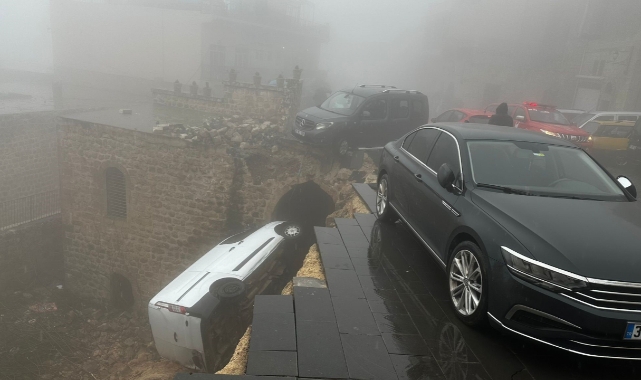 Mardin'in Artuklu ilçesinde sağanak yağıi nedeniyle çöken yoldaki 2 araçta hasar oluştu.