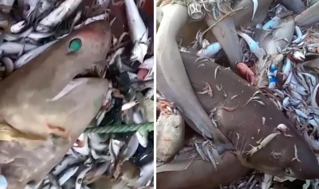 Mersin'in Silifke ilçesinden tekne ile Akdeniz'in 15 mil açığına açılıp trol ağ ile avlanan balıkçılar 8 künt burunlu altı solungaçlı boz camgöz köpekbalığı yakaladı. Köpek balıklarını görünce şaşıran balıkçılar, o anları da cep telefonu ile kaydetti. Balıkçılardan biri, "Bu sene kimse Akdeniz'e girmesin, bunlar adamı yer, düşmanlarımız girsin. Tarihte böyle bir şey gördün mü? 8 tane" gibi ifadeler kullandı. Balıkçıların köpek balıklarını tekrar denize bıraktığı öğrenildi.YILLARDIR İNSANA SALDIRDIĞI GÖRÜLMEMİŞ