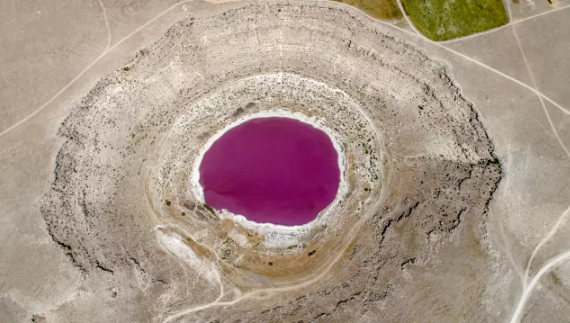 Konya'nın Karatay ilçesinde yer alan ve karstik yapısı, pembe rengiyle ünlü Meyil Obruk Gölü, tamamen kurudu.