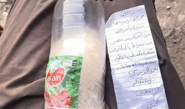 "Gazze'deki kardeşlerimize, hasadımızdan. Ey büyük direnişin halkı, sizi seviyoruz ve sizi çok takdir ediyoruz. Allah'ın nimetlerinden sadece bir kısmı…"Görgü tanıklarına göre Gazze sahilinde toplanan birçok çocuk ve aile, kıyıya vuran bu şişeleri sevinçle karşıladı. Yardım paketlerinin içinde başta hurma, kuruyemiş, bisküvi ve konserve ürünler gibi uzun ömürlü gıdalar yer alıyor.Mısırlı gönüllüler, bu sembolik ama anlamlı eylemin hem Gazze halkına moral vermek hem de dünyanın dikkatini yaşanan insani drama çekmek amacıyla yapıldığını belirtiyor. Geleneksel yardım yollarının tıkandığı bir ortamda bu yaratıcı yöntem, bölge halkına yalnız olmadıklarını hatırlatıyor.Uluslararası kamuoyundan ablukanın kaldırılması ve kalıcı insani yardım koridorlarının açılması yönündeki çağrılar ise artarak devam ediyor.