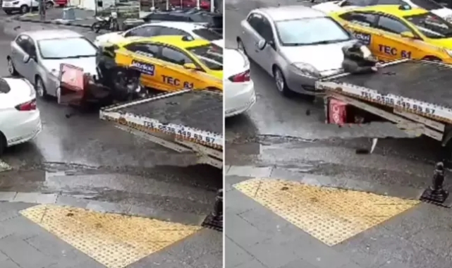 Çamçeşme Mahallesi'nde dün, 34 KYG 127 plakalı motosikletle ilerleyen F.F. ile aynı yönde seyreden 34 EH 6467 plakalı otomobilin sürücüsü V.K. arasında trafikte tartışma yaşanmıştı. Tartışma sonrasında motosikletli, yanından geçtiği otomobilin dikiz aynasını kırmış, sürücü V.K. de otomobili motosikletlinin üzerine sürmüştü. Motosikletli, kendisine çarpan otomobil ile çekici arasında sıkışarak yaralanmıştı.Olayın ardından yaralı hastanede tedavi altına alınırken, otomobiliyle kaçmaya çalışırken 2 araca daha zarar veren V.K. polis ekiplerince gözaltına alınmıştı. Kaynak:Haberler.com