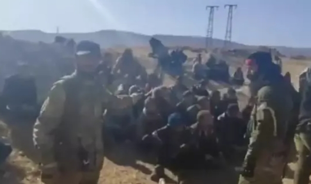 Suriye'de Beşar Esed rejimine karşı operasyon başlatan silahlı muhalif gruplar ilerleyişlerini sürdürüyor. Halep ve İdlib'in ardından kuzeydeki Hama kent merkezine ulaşan muhalifler rejime ait çok sayıda askeri de esir alıyor.ESİRLERİN GÖRÜNTÜLERİNİ PAYLAŞTILARHanaser'de 30 rejim askerinin esir alındığını duyuran silahlı muhalif gruplar, ellerindeki askerlerin görüntülerini cep telefonlarıyla kaydedip servis ettiler.YAN YANA DİZDİLERİnternete düşen videoda muhalif bir askerin, yan yana dizilen rejim askerlerini göstererek savaşı kazanacakları yönünde mesajlar verdiği görülüyor.