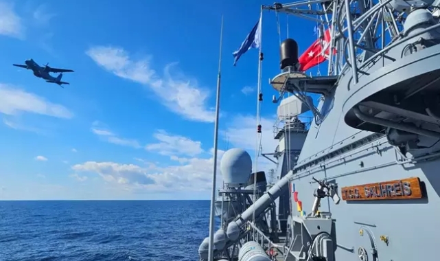 Paylaşımda, Akdeniz'de Türk Hava Kuvvetleri ile Deniz Kuvvetleri'nin de katılımıyla düzenlenen 'Deniz Muhafızı Harekatı'ndan bir görsele yer verildi. TCG Salihreis Fırkateyni'nin güvertesinden paylaşılan görselde, Türk Hava Kuvvetleri'ne ait savaş uçağının geçtiği görüldü.