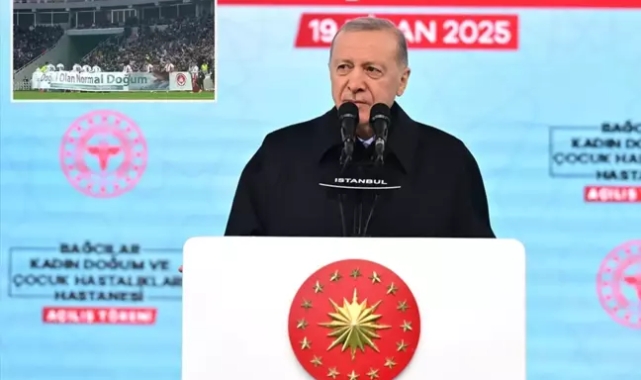 Cumhurbaşkanı Recep Tayyip Erdoğan, Bağcılar Kadın Doğum ve Çocuk Hastalıkları Hastanesi'nin açılışını yaptı. Cumhurbaşkanı Erdoğan, Süper Lig maçında açılan "normal doğum" pankartıyla başlayan tartışmalara değindi. Erdoğan, nüfus artı hızının ve doğurganlık oranının düştüğü bir dönemde bu tip hezeyanlara vakit ayırmayacaklarını vurguladı.