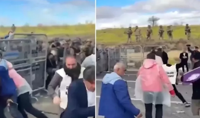 PKK elebaşısı Öcalan'ın doğum günü nedeniyle Diyarbakır'dan Şanlıurfa'ya yürümek isteyen gruba jandarma engel oldu. Jandarma yolu bariyerlerle kapatırken, göstericilerin jandarmaya taş attığı görüldü.