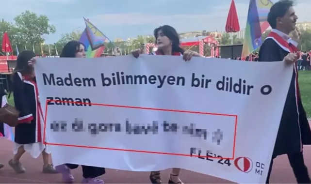ODTÜ mezuniyet töreninde, üç kişilik öğrenci grubunun elinde taşıdığı pankartta Kürtçe küfürlü ifadeler kullanıldı.