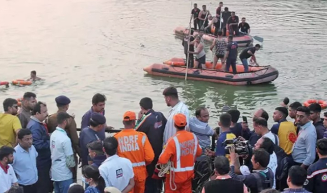 Hindistan’ın Gucerat eyaletinde yer alan Vadodara kentindeki Harni Gölü’de öğrenci ve öğretmenleri taşıyan tekne alabora oldu. Kazada, yaşları 7 ila 13 arasında değişen 12’si çocuk, 2’si öğretmen toplam 14 kişi hayatını kaybetti. Polis, 20 çocuğun kurtarıldığını ve 2 kişinin kayıp olduğunu ifade ederek, bazı çocukların yoğun bakımda tedavi altına alındığını aktardı.Yetkililer, öğrenci ve öğretmenlerin piknik için bölgede bulunduğunu ve tekneye gezi yapmak için bindiklerini belirtti. Teknede kaç kişinin olduğu henüz bilinmezken, gölde arama ve kurtarma çalışmaları devam ediyor.