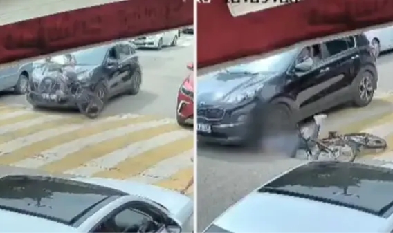 Kocaeli'nin Kartepe ilçesinde bir otomobil, 13 yaşındaki bisikletli çocuğa çarptı. Otomobilin üstünden geçtiği çocuk kaldırıldığı hastanede hayatını kaybederken, sürücü gözaltına alındı. Kaza anı bir iş yerinin güvenlik kamerasına yansıdı.
