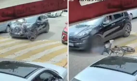 Kocaeli'nin Kartepe ilçesinde otomobilin çarptığı 13 yaşındaki bisikletli çocuk, kaldırıldığı hastanede hayatını kaybetti. Kaza anı güvenlik kamerası tarafından kaydedildi.
