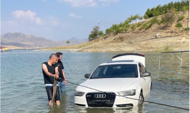 Elazığ'da feribot beklerken freni boşalan bir otomobil, biniş rampasından Keban Baraj Gölü'ne düştü. Olayda otomobilde bulunan 5 kişi yara almadan kurtuldu.