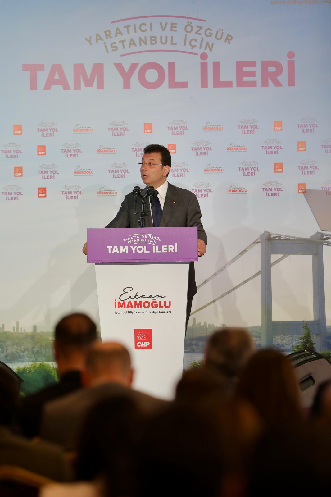 İmamoğlu, “Yaratıcı İstanbul” kapsamında, önümüzdeki 5 yılda atacakları adımları özetle şöyle sıraladı: KÜLTÜR BÖLGELERİ “Bu dönem İstanbul’a kazandırdığımız alanları da kapsayacak şekilde, önümüzdeki 5 yılda açacağımız 200 yeni mekanla, İstanbul’a 100 kültür-sanat bölgesi kazandıracağız. 100 kültür bölgesiyle, yepyeni mekanlarla İstanbul, dev bir kültür merkezine dönüşecek. Şehrin tamamı, kültüre ve sanata eşit şekilde ulaşabilecek.”KÜLTÜREL YAŞAM MERKEZLERİ“Eğitimden sağlığa ,sosyalleşme alanlarına çok sayıda hizmet sunduğumuz Yaşam Merkezlerimizi, önümüzdeki dönemde de konusuna göre uzmanlaşmış yeni merkezlerle İstanbul’a yaygınlaştıracağız. Kültür-sanat alanında hizmete açacağımız yeni Kültürel Yaşam Merkezleri ile vatandaşlarımıza keşfetme ve kültür-sanat etkinlikleri ile bir araya gelme fırsatı sunacağız.Göreve geldiğimizde 4 olan müze sayısını, 35’e çıkardık. Müzelere benzer bir şekilde, 25 yılda açtıkları kütüphanenin iki katından fazla kütüphaneyi 5 yılda açtık. 4 yıl önce 20 olan kütüphane sayısını, 50 yeni kütüphane açarak, 70’e çıkardık. Gençlerimize eşit imkanlar, bilgiye erişim ortamları sunmak adına bu sayıyı önümüzdeki dönem artırarak, 40 yeni kütüphaneyi daha halkımızın hizmetine sunacağız.”KÜLTÜR VE SANAT ETKİNLİKLERİ“İstanbul’u, kültür ve sanatta 24 saat yaşayan, 365 gün etkinliklerle dolu bir kent haline getireceğiz. Yılda 10.000 etkinlik ile 5 yılda 50.000 etkinlik düzenleyip, 50 milyonun üzerinde sanat severi ağırlayacağız. Kültür-sanat hayatını, tüm paydaşlarla birlikte geliştirip, zenginleştireceğiz. Uluslararası arenada İstanbul’un görünürlüğünü artırmak için, önümüzdeki dönem Kültürel Diplomasi Birimimizle daha çok iş birliği yapacağız. Kültürel Diplomasi Birimi ile uluslararası görüşmeleri yürütürken, İstanbul ayağında yapacağımız ev sahiplikleri için de ‘Uluslararası Sanatçı Rezidansı’nı kuracağız.”FESTİVALLER“Üniversite şenliklerini yasaklayanlar, festivalleri iptal ettirenler, şimdi kalkmış ‘Festival yapacağız’ diyor. Festival yasaklayarak, sanatçı yasaklayarak bu işler olmaz. Bir kısmını bu dönemde başlattığımız festivalleri, yeni dönemde çeşitlendirerek, İstanbul’u festivaller kenti yapmaya kararlıyız. Yeni dönemde, farklı alanlarda, kültür ve sanat alanında paydaşların ürettikleri festivalleri de destekleyerek, en az 100 festival düzenleyeceğiz.Uluslararası Gençlik Festivali’nden Haliç Festivali’ne, Uluslararası Dans Festivali’nden gençlik Orkestraları Festivali’ne, İstanbul Edebiyat Festivali’nden Boğaziçi Festivali’ne, Dünya Müzikleri Festivali’ne varıncaya kadar, İstanbul festivale doyacak. Bu yasakçı zihniyete boyun eğmeyeceğiz.”SERGİLER“İBB ile sergi, sanat, müze, 5 yıl öncesine kadar, yan yana bile gelmeyen iki kelimeydi. Şimdi uluslararası ölçekte sergilere imza atan, dünyaca ünlü sanat kurumlarıyla sergiler düzenleyen bir noktaya geldik. İBB Miras’ın kente kazandırdığı marka değeri ve 35 yeni müze sergi alanıyla, İstanbul, dünyanın dikkatini çeken bir kültür-sanat merkezi haline geldi. Önümüzdeki dönemde de İstanbul’un dört bir yanında kazandıracağımız mekanlarda, yılda 100, 5 yılda en az 500 sergiyi, katılımcı bir anlayışla hazırlayıp, İstanbullularla buluşturacağız.”HERKES İÇİN HER YERDE KÜLTÜR-SANAT“Mevcut ekonomik koşullarda, kültür-sanat etkinliklerini herkese, her yere ulaştırmak için mobilize olmayı çok önemsiyoruz. Bu sayede şehrin çeperlerini, en ücra yerlerini kültür-sanatla buluşturuyoruz. Gelecek 5 yılda da adım atılmadık yer bırakmayacağız. Önümüzdeki dönemde, ‘Cumhuriyet Otobüsü’, ‘Gezici Çocuk Şenlikleri’, ‘Semt Festivalleri’, ‘Gezici Film Festivali’, ‘Semtimde Orkestra’, ve ‘Kadınlar Matinesi’ ile adım atılmadık, kültür ve sanat ile ulaşılmadık mahalle bırakmayacağız.”SANAT ALTYAPI MODELİ“Çocuklar, kültür-sanat alanında da önceliğimiz. Onlar için eğitimler, etkinlikler ve gelişim atölyeleri düzenliyoruz. Yeni dönemde, çocuklarımız için planladığımız pek çok çalışmanın yanında, üç aşamalı bir ‘Sanat Altyapı Modeli’ni hayata geçireceğiz. İlk hedefimiz; mevcut kültür-sanat merkezlerimizde 100.000 çocuğumuza sanat eğitimi vermek olacak. İki yıllık sanat eğitimleriyle kendine güvenen, hayal gücü gelişmiş çocuklar yetiştireceğiz.İstanbul’un farklı bölgelerinde yaşayan çocuklar için tasarladığımız merkezlerin ilkini, pilot çalışmamız olarak, Çengelköy Çocuk Sanat Merkezi’nde hayata geçirdik. İçerisinde: bağlama, gitar, keman, perküsyon ve koro eğitimlerinin yanı sıra resim, heykel, 3 boyutlu animasyon, halk dansları, bale, tiyatro ile yaratıcı drama alanlarında eğitimler olacak. Bu merkezlerin sayısını hızla arttırıp, 39 ilçede ‘Çocuk Sanat Merkezi’ açacağız. Üçüncü aşamada, ‘İBB Sanat Akademileri’ni kuracağız.”DESTEKLERKonservatuar öğrencilerimize, yılda 1000 olmak üzere, 5 yılda, toplam 5000 öğrenciye, 15 bin TL burs vereceğiz. ‘Kültür ve Sanat Destek Birimi’ kurarak, belirlediğimiz önceliklere göre tiyatro, sinema, belgesel, müzik ve dans gibi farklı sanat disiplinlerinde, yılda 20 milyon olmak üzere, 5 yılda, toplam 100 milyon TL ‘Kültür-Sanat Desteği’ni sanatçılarımızla buluşturacağız.Ayrıca ‘Çalışma Alanı Desteği’ ile kültür ve sanatın farklı alanlarında üretimde bulunan bağımsız sanatçılarımıza, belirli periyotlarda çalışma alanı imkânı sunacağız. 18 yaşına dolduran ve başvuruda bulunan 100 bin gencimize; tiyatro, kitapçı, sinema, müze gibi kültür sanat etkinlikle