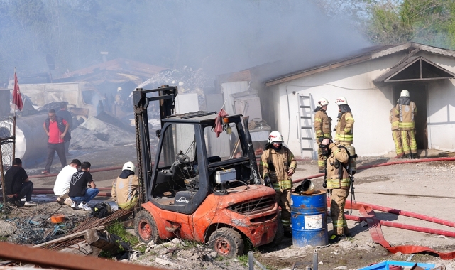 Pendik'te yediemin deposunda çıkan yangına itfaiye ekipleri müdahale ediyor.