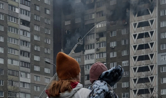 Rusya, bu sabah erken saatlerde Ukrayna şehirlerine büyük çaplı bir saldırı daha başlattı. Başkent Kiev, Lviv, Mıkolayiv, Dnipro ve Harkov Bölgeleri hedef alındı.The Kyiv Independent'ta yer alan habere göre yerel saatle 12.00 itibarıyla çeşitli bölgelerde en az 5 kişi hayatını kaybetti, 30'dan fazla kişi ise yaralandı. Yetkililer, kurtarma operasyonları devam ettiği için rakamların artabileceğini belirtti.Sahadaki Kiev Independent gazetecilerine göre patlamalar Kiev'i sarstı. Kentin askeri yönetimine göre Kiev'de en az dört kişi hayatını kaybetti, en az 21 kişi de yaralandı.Patlama haberlerinin ardından ilk müdahale ekipleri başkentin Dnipro bölgesine çağrıldı. Belediye Başkanı Vitali Kliçko'nun daha önce bildirdiğine göre, olayda ikisi hastaneye kaldırılan üç kişi yaralanmıştı.Kliçko, Dnipro bölgesindeki iki yüksek gerilim hattının füze enkazından zarar gördüğünü bildirdi. Kliçko Holosiivskyi bölgesinde arabaların ve bir araba tamirhanesinin alev aldığını belirterek, ilk müdahale ekiplerinin yangını kontrol altına almak için yola çıktığını da sözlerine ekledi.SALDIRIDA 18 KATLI BİNA ALEVLERE TESLİM OLDUYetkililere göre ilçedeki 18 katlı bir binada da yangın çıktı ve aralarında hamile bir kadının da bulunduğu en az 19 kişi yaralandı. Binada yaşayan yaklaşık 60 kişi tahliye edildi. İçişleri Bakanı Ihor Klymenko'ya göre Holosiivskyi semtindeki hasarlı binanın enkazı altında dört kişi ölü bulundu.Kliçko ayrıca şehrin doğu yakasında bazı sakinlerin elektrik kesintisi yaşadığını, daha sonra bu bölgedeki ısıtma altyapısının hasar gördüğünü söyledi.UKRAYNA 20 RUS FÜZESİNİ DÜŞÜRDÜKiev Askeri İdaresi, Ukrayna Hava Savunmasının ülkenin başkenti üzerinde neredeyse 20 Rus füzesini düşürdüğünü bildirdi.Rus kuvvetlerinin Rusya topraklarından Tu-95MS stratejik bombardıman uçaklarından Kh-101, Kh-555 ve Kh-55 seyir füzelerini fırlattığı bildirildi.Kiev Bölgesinin başka yerlerinde Rus saldırısı çok sayıda binanın hasar görmesine neden oldu ancak henüz herhangi bir can kaybı bildirilmedi.