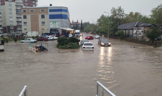 Sinop'un Boyabat ilçesinde akşam saatlerinde etkisini gösteren sağanak yağış, yollarda su birikintilerine neden oldu ve trafik akışında aksamalara yol açtı.