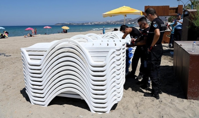Kuşadası Belediyesi ekipleri, sahillerde parayla şezlong ve şemsiye kiraladığını tespit ettikleri işletme ve kişilere idari para cezası uyguladı.