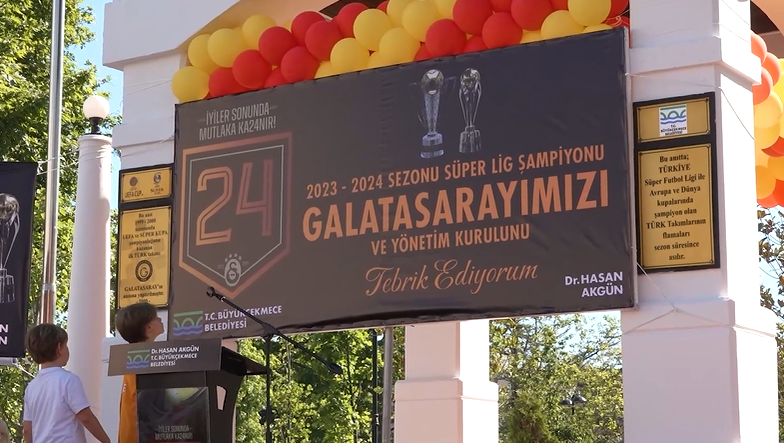 2000 yılında Galatasaray'ın UEFA ve Süper Kupa'yı kazanması anısına Büyükçekmece Belediyesi’nce yaptırılan ve her yıl şampiyon olan takımın bayrağının çekildiği şampiyonluk anıtında, bu yıl 24’üncü kez şampiyon olan Galatasaray’ın bayrağı dalgalanacak. Törene Büyükçekmece Belediye Başkanı Dr. Hasan Akgün, Galatasaray Başkanı Dursun Özbek, Genel Sekreter Eray Yazgan, 24. Dönem milletvekili Süleyman Çelebi, Büyükçekmece Galatasaraylılar Dernek Başkanı ve İBB Sağlık Daire Başkanı Dr. Önder Yüksel Eryiğit, Galatasaraylı futbolcu Ali Yeşilyurt, Teknik Direktör Okan Buruk’un ağabeyi Tarık Buruk, Galatasaraylı eski futbolculardan Muhammet Altıntaş’ın yanı sıra yüzlerce Galatasaray taraftarı katıldı. “Galatasaray’ın Büyükçekmece ile olan bağları fazla”Büyükçekmece Belediye Başkanı Dr. Hasan Akgün, Galatasaray Teknik Direktörü Okan Buruk’un ve geçmişte Galatasaray’da önemli başarılara imza atan pek çok futbolcunun da Büyükçekmeceli olduğunu hatırlatarak şöyle konuştu; “Galatasaray’ın Büyükçekmece ile olan bağları fazla.Bu akşam bu saate şampiyonlar anıtına bayrağı biraz sonra beraber çekeceğiz. Tekrar Dursun Özbek başkanıma, teknik heyete, bütün o top toplayıcılar dahil emeği geçen herkese ama İcardi gibi golleri atarak şampiyonluğumuzu ilan eden Galatasaray futbol takımızın her bir ferdine ayrı ayrı teşekkür ediyorum” ifadesini kullandı.