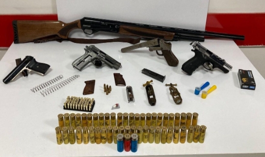 Samsun'un Salıpazarı ilçesinde bir evde yapılan aramada 5 silah ve fişekler ile çok sayıda silah parçası bulundu. Olayın ardından şüpheli gözaltına alındı.