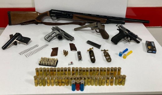 Samsun'un Salıpazarı ilçesinde bir evde 5 silah ve fişekler ile çok sayıda silah parçası ele geçirildi.Salıpazarı İlçe Emniyet Amirliği görevlilerince yapılan uygulama sırasında durdurulan motosiklet sürücüsü H.Ş'nin (23) üzerinde, sentetik uyuşturucu hap bulundu.Zanlının hareketlerinden şüphelenen ekipler evinde yaptıkları aramada ruhsatsız 1 tabanca, 1 av tüfeği, 2 kurusıkı tabanca, 1 kartuş atar el tüfeği, 56 tabanca fişeği, 48 kartuş, kartuş dolumunda kullanılan malzemeler ile silah ve şarjör parçaları ele geçirdi.H.Ş. gözaltına alındı.