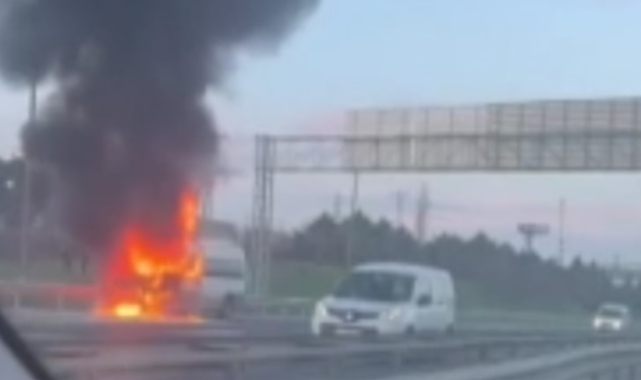 İstanbul Çatalca'da, TEM Otoyolu'nda içi dolu servis minibüsünde yangın çıktı.