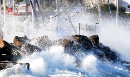Bodrum'da sağanak yağışlarla başlayan şiddetli lodos ilçede hayatı felç etti. Bodrum-Datça- Bodrum- İstanköy (Kos) feribot seferleri saatdeki hızı 60 kilometreyi, açık denizde ise dalga yüksekliğinin 3 metreyi aşması nedeniyle iptal edildi.Kumbahçe Paşatarlası ve Bitez sahilindeki ev ve işyerleri dev dalgalar nedeniyle sular altında kaldı. Kafeterya ve restoranların masa sandalyeleri denize sürüklendi ve sabah saatlerinde esnaf denizden malzeme topladı.GEMİLER KOYLARA SIĞINDI, TEKNELER BATTIBodrum’da şiddetli lodos nedeniyle Güllük limanından hareket eden kuruyük gemileri Bodrum koylarına sığınmak zorunda kalırken küçük ve amatör balıkçı kayıkları dalgaların etkisi ile karaya sürüklendi.Şiddetli lodosun bu gece yarısından itibaren etkisini yitireceği belirtildi.