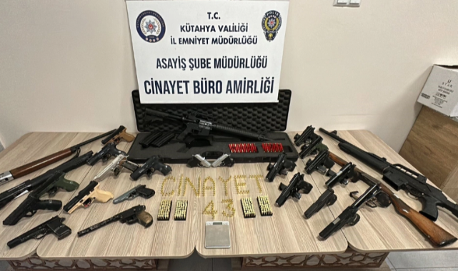 Kütahya'da silah ticareti yapan şahıslara yönelik gerçekleştirilen operasyonlarda 20 adet ruhsatsız tabanca, 6 adet ruhsatsız tüfek, mühimmat ve uyuşturucu ele geçirildi. 16 kişi gözaltına alındı.