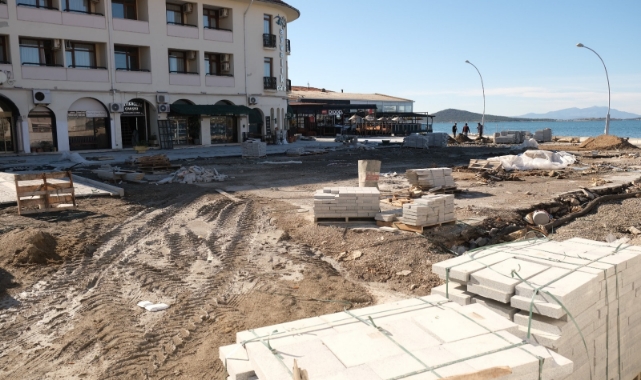 Ayvalık’ta yıllardır otopark olarak kullanılan deniz kenarındaki tarihi Gümrük Meydanı’nda yürütülen düzenleme çalışmalarının sonuna geliniyor. Tamamlandığında kent, güvenli, denizle bütünleşen ve modern bir meydan kazanacak.