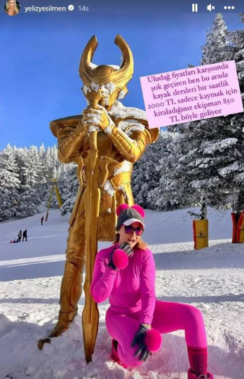 Oyuncu Yeliz Yeşilmen, okulların tatile girmesiyle çocuklarını Uludağ'a tatile götürdü. Tatilinden kareleri sık sık paylaşan ünlü oyuncu, fiyatlara sitem etti."BİR FİNCAN TÜRK KAHVESİ 200 TL"Uludağ'daki fiyatları sosyal medya hesabından paylaşan 45 yaşındaki oyuncu, "Bir fincan Türk kahvesi 200, minik tatlı 550, et yemeği ise 3 bin 700 TL. Uludağ fiyatları karşısında şok geçiren ben. Bu arada kayak dersleri bir saatlik 2 bin TL, kaymak için kiraladığınız ekipman 850 TL böyle gidiyor" dedi.