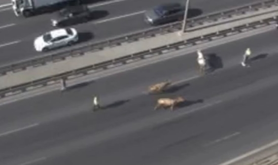 Avcılar'da TEM Ispartakule gişeleri mevkiinde 4 inek otoyola girdi. Trafiğe aldırış etmeden yol boyu yürüyen inekleri sürücüler çıkarmaya çalışsa da başarılı olamadı.İhbar üzerine olay yerine gelen polis ekipleri inekleri güvenli şekilde otoyoldan çıkardı. İneklerin otoyolda yürüdüğü anlar ise vatandaşlar tarafından cep telefonu kamerasıyla görüntülendi.