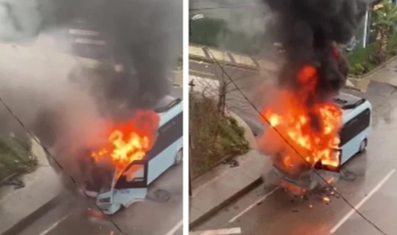 Tıklım tıklım dolu minibüste bir anda yangın çıktı