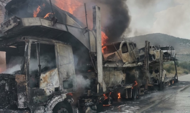 Mersin'de Ömer Güleç idaresindeki 06 LJ 923 plakalı sıfır araç yüklü TIR'da Pozantı Tarsus Otoyolu'nun Damlama mevkisinde henüz belirlenemeyen nedenle yangın çıktı. Yangını fark eden sürücü TIR'ı güvenlik şeridine çekip durumu Adana ve Mersin itfaiye ekiplerine bildirdi. Bölgeye gelen ekiplerin müdahalesiyle yangın söndürüldü. TIR VE 7 ARAÇ KÜLE DÖNDÜYangın sonucu TIR ve üzerindeki 7 sıfır araç yanarak kullanılamaz hale geldi. Yangında bir otomobil de yanmaktan son anda kurtarıldı.
