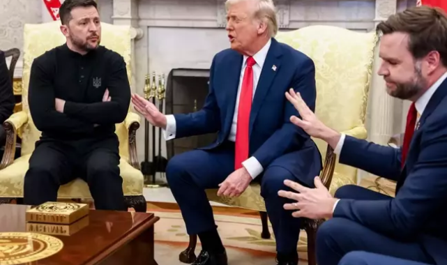 ABD Başkanı Trump ile Ukrayna Devlet Başkanı Zelenskiy arasında Oval Ofis'te yapılan görüşmede tartışma yaşanmış, bunun üzerine daha önceden planlanan ortak basın toplantısı iptal edilmiş ve Zelenskiy Beyaz Saray'dan ayrılmıştı.Tartışma sırasında Trump, Ukrayna liderinin tutumunu eleştirirken, Zelenskiy de ülkesine yönelik destek beklentisini dile getirmişti.Tartışma üzerine, imzalanacağı duyurulan nadir toprak elementleri anlaşması da imzalanmamıştı.Başkan Trump, Oval Ofis'teki hararetli tartışmanın ardından Truth Social hesabından yaptığı açıklamada, Zelenskiy'nin barışa henüz hazır olmadığını savunmuştu.Zelenskiy de Fox News'a verdiği mülakatta Trump'tan özür dileyip dilemeyeceği yönündeki soruya karşılık, özür dilemesini gerektirecek yanlış bir şey yapmadığını ifade etmişti. Kaynak:Haberler.com