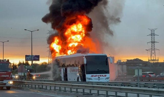 İstanbul'un Ümraniye ilçesinde sabah saatlerinde birbirine yakın noktalarda art arda yolcu otobüsü yangınları çıktı.İlk yangın Dudullu terminalinde meydana geldi. Motor kısmına yükselen alevler otogara girerken bir anda bütün otobüsü sardı. Durum üzerine otobüs hızlıca tahliye edilirken çevredekini ihbarı üzerine olayını polis ve itfaiye ekipleri sevk edildi. Yangında ölen ya da yaralanan olmazken itfaiye kiplerinin çalışmaları sonucunda yangın söndürüldü. Otobüs kullanılamaz hale geldi.Diğer yangın TEM Dudullu kavşağında meydana geldi. İddiaya göre seyir halindeki otobüsün motor kısmından yükselen alevler bir anda bütün otobüsü sardı. İhbar üzerine olay yerine itfaiye ekipleri sevk edildi.İtfaiye ekipleri hızlıca yangına kontrol altına alarak söndürürken TEM Otoyolu Edirne istikametinde trafik yoğunluğu meydana gelirken, Edirne istikametinde trafik akışı tek şeritten sağlandı. Yangında ölen ya da yaralanan olmazken otobüs kullanılamaz hale geldi. Otobüsün olay yerinden çekici yardımıyla kaldırılması ile TEM Otoyolu Edirne istikametinde trafik akışı yeniden normale döndü.'BURAYA GELİRKEN MOTOR ZATEN YANIYORDU'Dudullu terminalindeki yangın hakkında konuşan Abdullah Arıcı, "Gelen otobüs motor kısmı yanarak geldi. Bir anda alev aldı. İçerideki insanları tahliye ettiler. İtfaiye geldi. Buraya gelirken motor kısmında alevler zaten vardı. Hemen kapıları açıldı tahliye edildi. İnsanlar iner inmez alevler yükseldi. Sonrasında itfaiye geldi. Yaralanan yok" dedi.'ANKARA'DAN ÇIKTIĞIMIZDA YANIK KOKUSU VARDI'Yangın hakkında konuşan yolculardan Aslan Akıncı, "Ankara’dan çıktığımızda yanık kokusu vardı. Kokudan rahatsız olduk ilk başta. Buraya gelene kadar bir şey yoktu. Otogara girişte arkadan duman çıkmaya başladı. Kapılar açıldı otobüsü tahliye ettik çıktık. Bir anda olan bir şey. Tam otogara girerken yangın çıktı. Burada indirecekti normalde. Bizim girişimizle beraber ateş çıkmaya başladı. Otobüs çok kalabalık değildi 10-15 kişi vardı. Yaralanan olmadı" şeklinde konuştu.