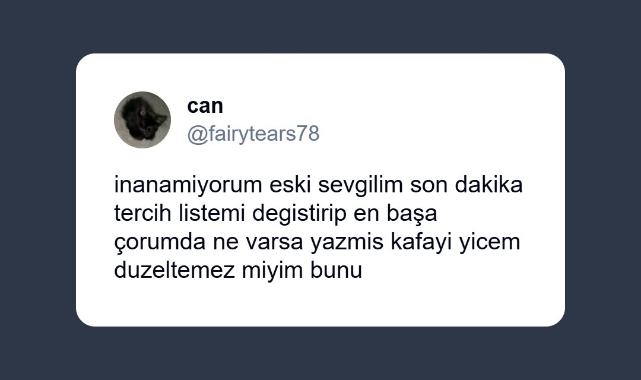 Üniversite yerleştirme sürecinde ilginç bir iddia gündeme geldi. Bir genç, Yükseköğretim Kurumları Sınavı (YKS) tercihlerini eski sevgilisinin son dakikada değiştirdiğini öne sürdü.