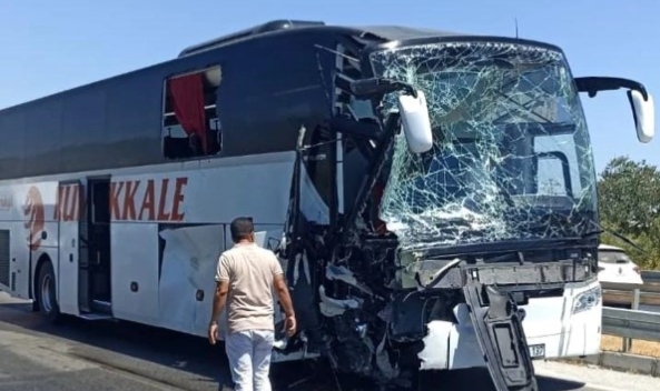 Yolcu otobüsü ile iş makinesi çarpıştı