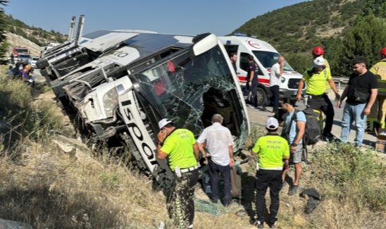 Kütahya'da şarampole devrilen yolcu otobüsündeki yaralanan 5 kişi hastaneye kaldırıldı.