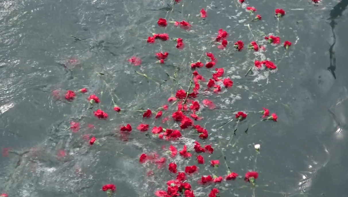 Zorunlu göç sırasında yaşamını yitirenlerin anısında denize yüzlerce karanfil atıldı.